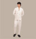 Ease with comfort – relaxed-fit drawstring shirt with a unique zigzag front, round collar, and chest pocket, paired with breathable, loose linen pants with elastic waist and pockets – Total boho x Free spirit vibes.